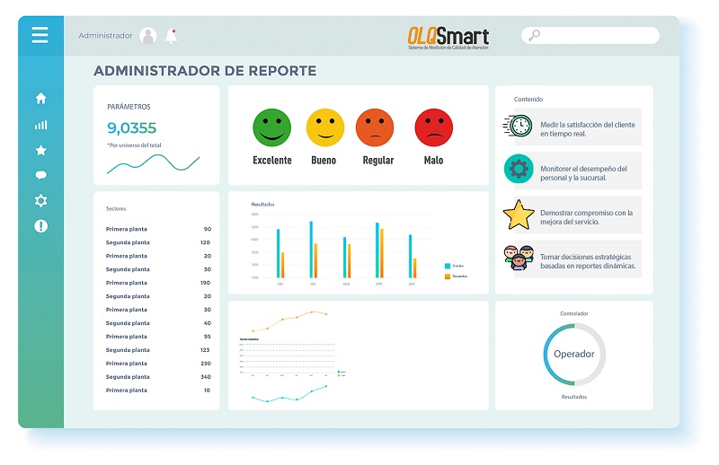Gracias a nuestra solución OlqSmart Enterprise podrás medir y conocer el nivel de satisfacción a través de nuestros calificadores de servicio, además, gracias a su reportería te permite ver en tiempo real los todos los canales electrónicos de atención que dispongas, tales como: Agencia, Ventanillas, Plataforma, etc y así tomar las mejores decisiones para elevar la calidad de atención que se da al cliente.
